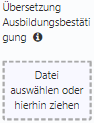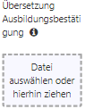 ![]() | Übersetzung Ausbildungsbestätigung Upload here a translation of your subject list incl. time commitment (ECTS) & in case of Übersetzung the English version |