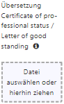 ![]() | Übersetzung Nachweis Weiterbildungen Please upload here the translation of the most recent proof of continuing education |