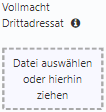 ![]() | Vollmacht Drittadressat (Power of attorney third party) Here you can upload a power of attorney if you request the Precheck for someone else. |