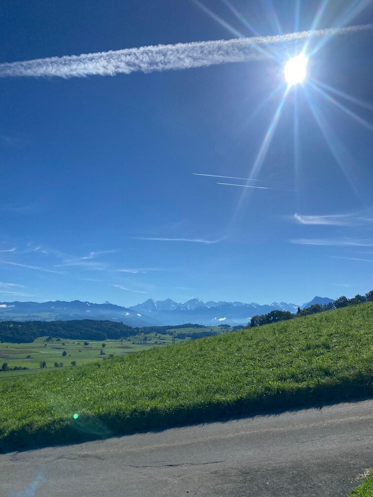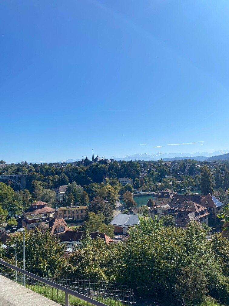 Ik heb uitzicht op de Jungfrau vanaf mijn balkon. Elke ochtend fiets ik van Bern naar (mijn werk met de bergen op de achtergrond) en dat blijft bijzonder.